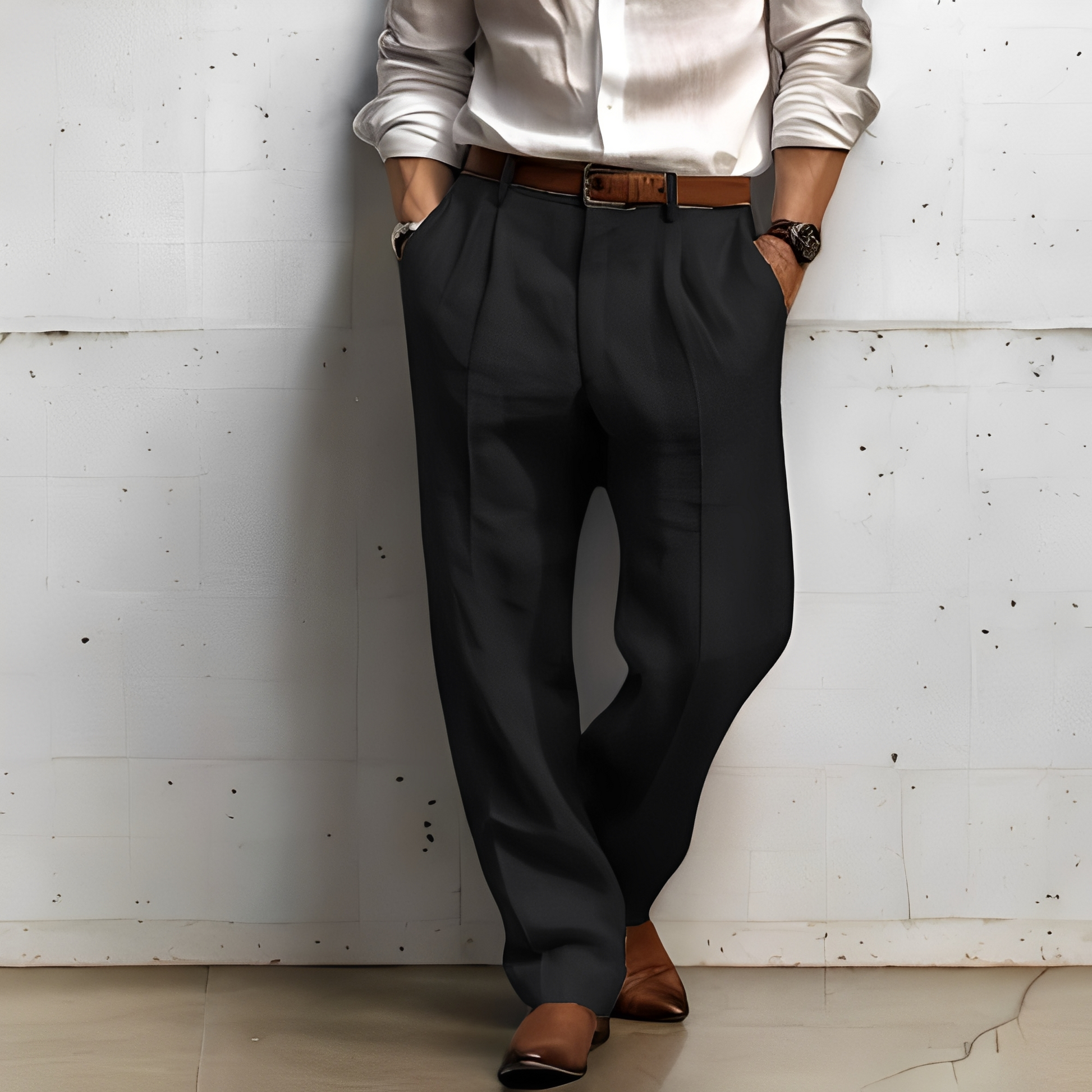 Päivitä vaatekaappisi näillä miesten hengittävillä leveälahkeisilla housuilla, jotka on suunniteltu tarjoamaan mukavuutta ja tyyliä koko päivän ajan. Näissä miesten housuissa on rento ja sulava siluetti, joka liikkuu mukanasi, täydellinen rentoihin ulkoiluihin, kaupunkikävelyihin tai rentoihin viikonloppuihin. Väljä leikkaus ja selkeät linjat yhdistävät klassisen mukavuuden ja nykyaikaisen vetovoiman kaikkiin tilanteisiin. Rento leikkaus ja pehmeä kosketus tekevät niistä ihanteelliset päivittäiseen käyttöön, olipa kyseessä aamukahvin haku tai iltameno. Kevyet ja helposti yhdisteltävät, nämä housut ovat monipuolinen välttämättömyys moderneihin rentoihin vaatekaappeihin.