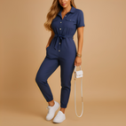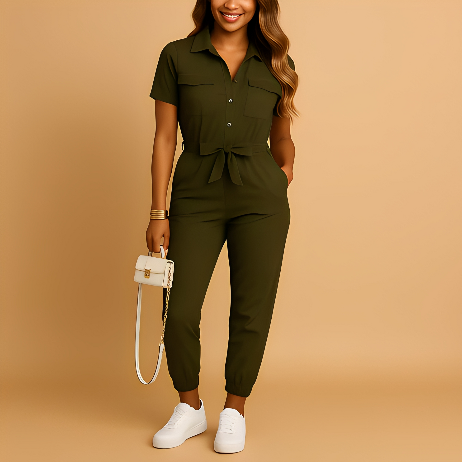 Tämä Agathelin istuva haalari vyöllä on suunniteltu korostamaan siluettiasi samalla kun se takaa tyylin ja mukavuuden. Vyötärön korostus ja elegantti leikkaus luovat imartelevan ja hienostuneen ilmeen, joka sopii kaikille vartalotyypeille. Valmistettu pehmeästä ja korkealaatuisesta kankaasta, se tarjoaa optimaalisen mukavuuden koko päivän ajan. Ihanteellinen työhön, juhliin tai erityistilaisuuksiin, se yhdistyy helposti korkokenkiin tai asusteisiin. Täydennä vaatekaappisi tällä monipuolisella ja tyylikkäällä haalarilla.