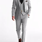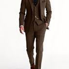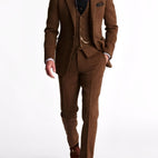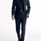 Alden-puku on tyylikäs, kolmiosainen tweed-smokki, joka yhdistää ajattoman luokan ja tyylitietoisuuden. Sen hieno leikkaus ja laadukas tweed-kangas takaavat elegantin esiintymisen erityisissä tilaisuuksissa. Olipa kyseessä häät, juhlat tai liiketapahtuma – tämä puku antaa jokaiselle tilaisuudelle sopivan säväyksen.