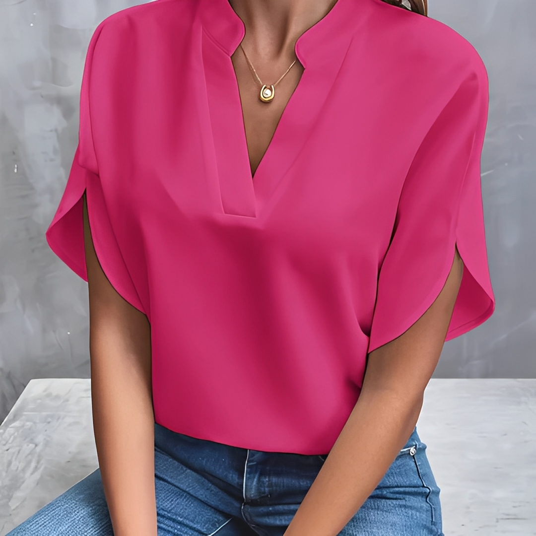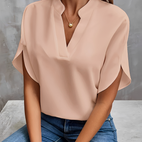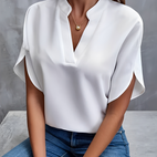 Ajaton eleganssi yksinkertaisuudessaan: Alicie-paita on suunniteltu naisille, jotka etsivät hienostunutta ilmettä ja päivittäistä mukavuutta. Imarteleva V-pääntie korostaa siluettiasi säilyttäen pehmeän ja naisellisen tyylin. Kevyestä ja hengittävästä kankaasta valmistettu paita on mukava aamusta iltaan. Sen yksinkertainen ja elegantti muotoilu tekee siitä täydellisen työhön, illallisille tai rentoihin ja tyylikkäisiin asuihin. Helppo yhdistää ja käyttää, Alicie on vaatekaappisi välttämättömyys.