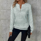 Pysy mukavana ja tyylikkäänä tällä Alisonin pitkähihainen ja vetoketjullinen naisten collegepaita, joka on täydellinen päivittäiseen käyttöön. Valmistettu pehmeästä ja korkealaatuisesta kankaasta, se tarjoaa lämpöä uhraamatta hengittävyyttä. Edessä oleva vetoketju mahdollistaa helpon kerrostamisen ja lisää modernin kosketuksen klassiseen ja rentoon ilmeeseen. Väljä leikkaus tekee siitä helpon yhdistää farkkuihin, leggingseihin tai verkkarihousuihin rentoa mutta huoliteltua asua varten. Monipuolinen vaate, joka on välttämätön kotona, töissä tai viikonloppuretkillä.