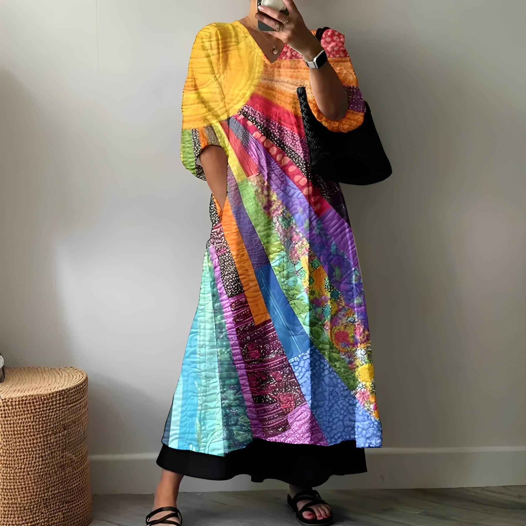 Värikäs ja mukava mekko, joka yhdistää leikkisän tyylin luonnolliseen eleganssiin.