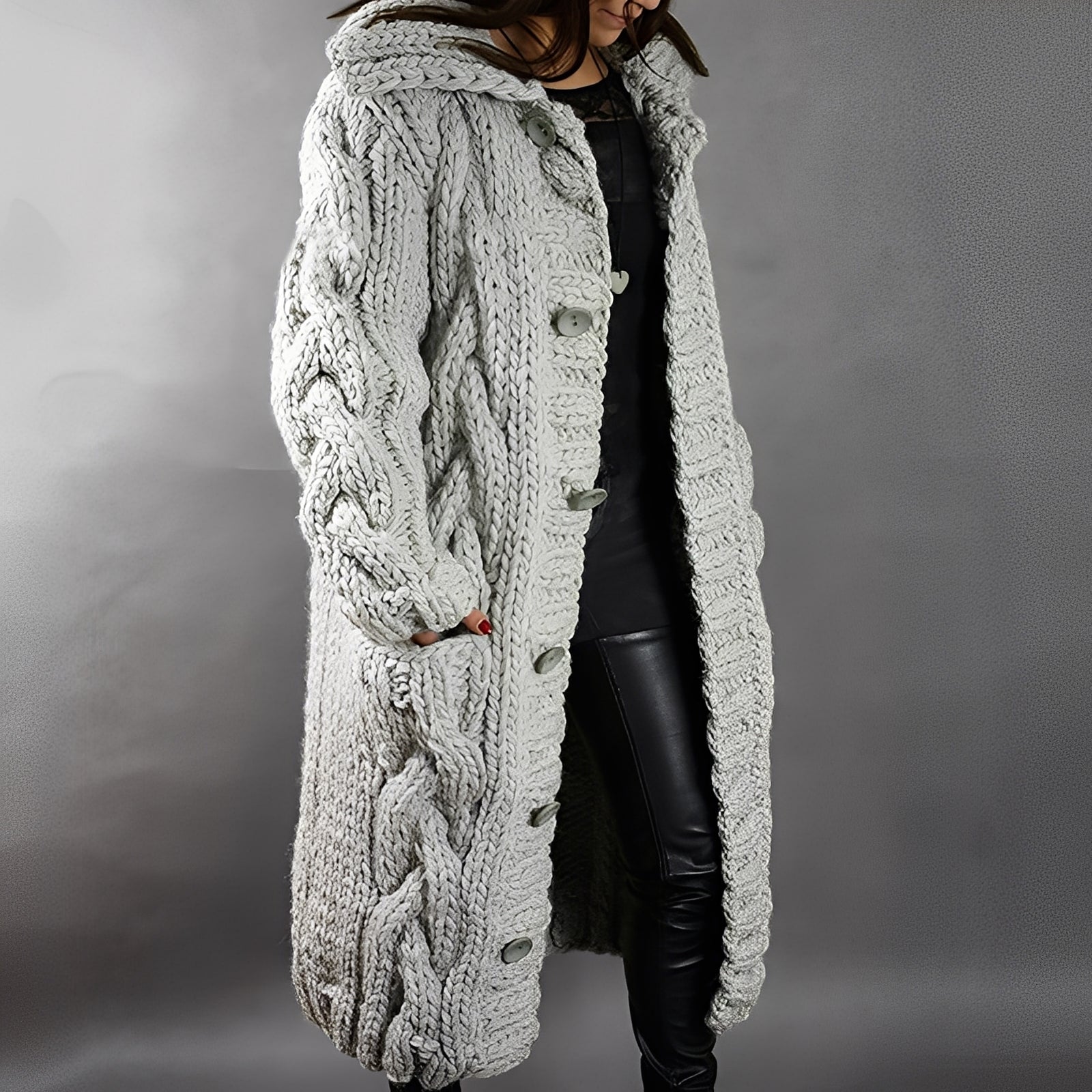 Arielle - Tyylikäs, rento istuva pitkä villatakki naisille