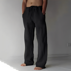 Tutustu Arthuriin, väljä pellavahousu miehille, täydellinen pysyäksesi tyylikkäänä ja mukavana lämpimällä säällä. Valmistettu korkealaatuisesta pellavasta, se tarjoaa laajan leikkauksen ja rennon muotoilun, ihanteellinen arkeen tai epävirallisiin tilaisuuksiin. Sen keveys ja hienostunut viimeistely antavat ulkoasullesi viileän ja modernin säväyksen. Nauti optimaalista mukavuutta säilyttäen samalla trendikäs tyyli.