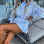 Naisten pitsisetti – pitkähihainen pusero ja korkeavyötäröiset shortsit. Tyylikäs ja kevyt setti, joka yhdistää hienostuneisuuden ja mukavuuden, ihanteellinen kuumiin päiviin ja erityistilaisuuksiin.