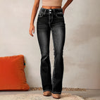 Carla - Rento, korkeavyötäröiset leveälahkeiset farkut naisille