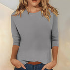 Koe vaivaton mukavuus Clara-väljässä puuvillapaidassamme naisille, joka on suunniteltu pehmeästä kankaasta ja varustettu rennolla 3/4-hihalla, mikä luo sujuvan ja imartelevan istuvuuden. Valmistettu korkealaatuisesta puuvillasta, se on pehmeä koskettaa ja tarjoaa erinomaisen ilmankierron koko päivän ajan. Sen väljä siluetti tarjoaa suuren liikkumisvapauden, mikä tekee siitä ihanteellisen työhön, rentoihin ulkoiluihin tai viikonlopun rentoihin asuihin. Sen minimalistinen ja ajaton muotoilu mahdollistaa helpon yhdistämisen farkkuihin, hameeseen tai shortseihin. Välttämätön ja monipuolinen, tämä paita yhdistää mukavuuden ja tyylin täydellisesti.