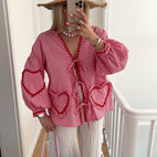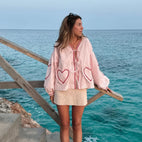 Naisten pusero ruutukuviolla, väljä leikkaus, röyhelöt ja solmukiinnitys edessä. Tämä monipuolinen pusero yhdistää mukavuuden ja leikkisän eleganssin.