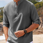 Cormacin miesten pitkähihainen pellavapaita yhdistää rentoa eleganssia ja korkeaa käyttömukavuutta. Valmistettu ensiluokkaisesta pellavakankaasta, se on ilmava ja hengittävä vaihtoehto tavallisille paidoille.