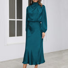 Danica - Virallinen pitkähihainen mekko halterneckilla naisille