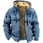 Tämä moderni huppari yhdistää näyttävän etnisen kuvion käytännölliseen lämpöön ja korkeaan käyttömukavuuteen. Pehmeä sisävuori pitää luotettavasti lämpimänä, kun taas kestävä ulkokerros on ihanteellinen kylmiin päiviin. Huppu tarjoaa lisäsuojaa, ja ainutlaatuinen muotoilu tekee takista erityisen katseenvangitsijan. Täydellinen miehille, jotka arvostavat sekä toiminnallisuutta että tyyliä.