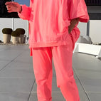 Eleanore-setti yhdistää väljästi leikatun yläosan ja yhteensopivat housut rentoon, mutta eleganttiin ilmeeseen. Valmistettu pehmeästä, korkealaatuisesta materiaalista, se tarjoaa mukavuutta koko päiväksi. Settiä voi käyttää erikseen tai yhdessä, ja se on ihanteellinen arkeen, vapaa-aikaan tai rentoihin tilaisuuksiin. Täydellinen naisille, jotka haluavat yhdistää tyyliä ja mukavuutta.