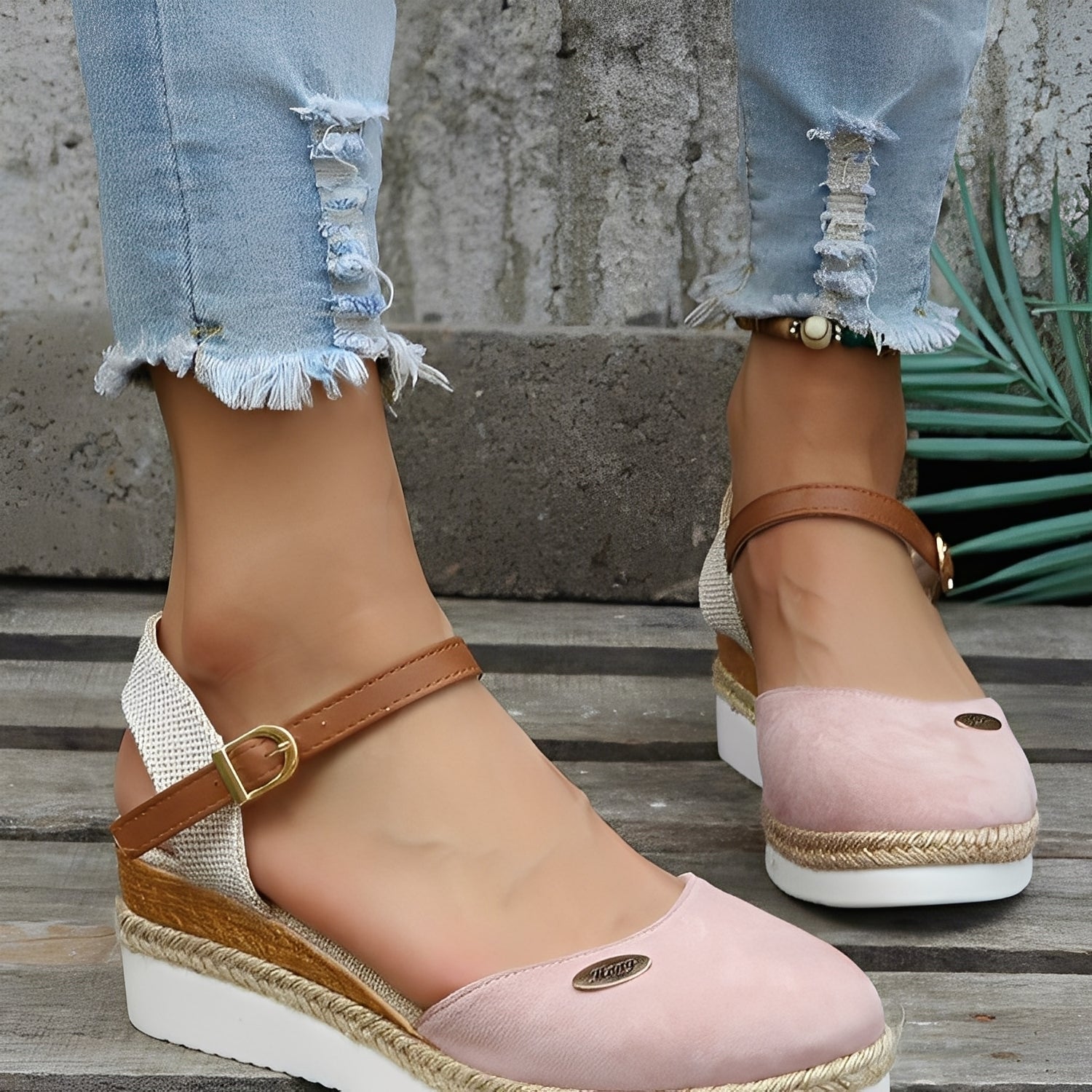 Elinor - Rentoja kiilakorkosandaaleja hampusta naisille