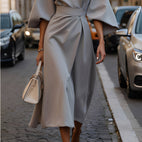 Tutustu naisten tyylikkääseen mekkoon, jossa on lyhtyhihat ja vyö, Élise, tyylikäs mekko, joka on suunniteltu yhdistämään hienostuneisuus ja imartelevat yksityiskohdat. Sen tyylikkäät lyhtyhihat ja yhteensopiva vyö korostavat siluettiasi samalla kun ne lisäävät naisellista viehätystä. Pehmeästä ja korkealaatuisesta kankaasta valmistettu mekko tarjoaa mukavuutta ja eleganssia koko päivän ajan. Täydellinen muodollisiin tilaisuuksiin, juhliin tai tyylikkäisiin arkiasuihin, se sopii helposti yhteen korkokenkien tai saappaiden kanssa. Saatavilla klassisissa ja kausiväreissä, tämä mekko on välttämätön osa jokaista vaatekaappia.