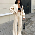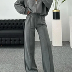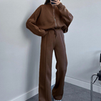 Naisten Asu - Ylisuuri Vetoketjullinen Paita - Leveät Korkeavyötäröiset Housut - Mukava Istuvuus: Täydellinen yhdistelmä mukavuutta ja tyyliä. Nauti rennosta leikkauksesta, jossa on ylisuuri vetoketjullinen paita ja leveät korkeavyötäröiset housut.