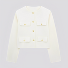 Lyhyt takki „Emelia“ yhdistää klassisen eleganssin ja nykyaikaisen leikkauksen. Selkeät linjat ja koristeelliset napit luovat hienostuneen ilmeen. Lyhennetty pituus tekee designista modernin ja naisellisen. Ihanteellinen yhdistettäväksi housujen, hameiden tai mekkojen kanssa. Täydellinen tyylikkäisiin arki- ja bisnesasuihin.