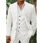 Valmistettu ensiluokkaisesta pellavasekoitteesta, tämä puku tarjoaa ilmavaa mukavuutta ja näyttää tyylikkäältä, ihanteellinen häihin, liiketapaamisiin tai muodollisiin tilaisuuksiin.