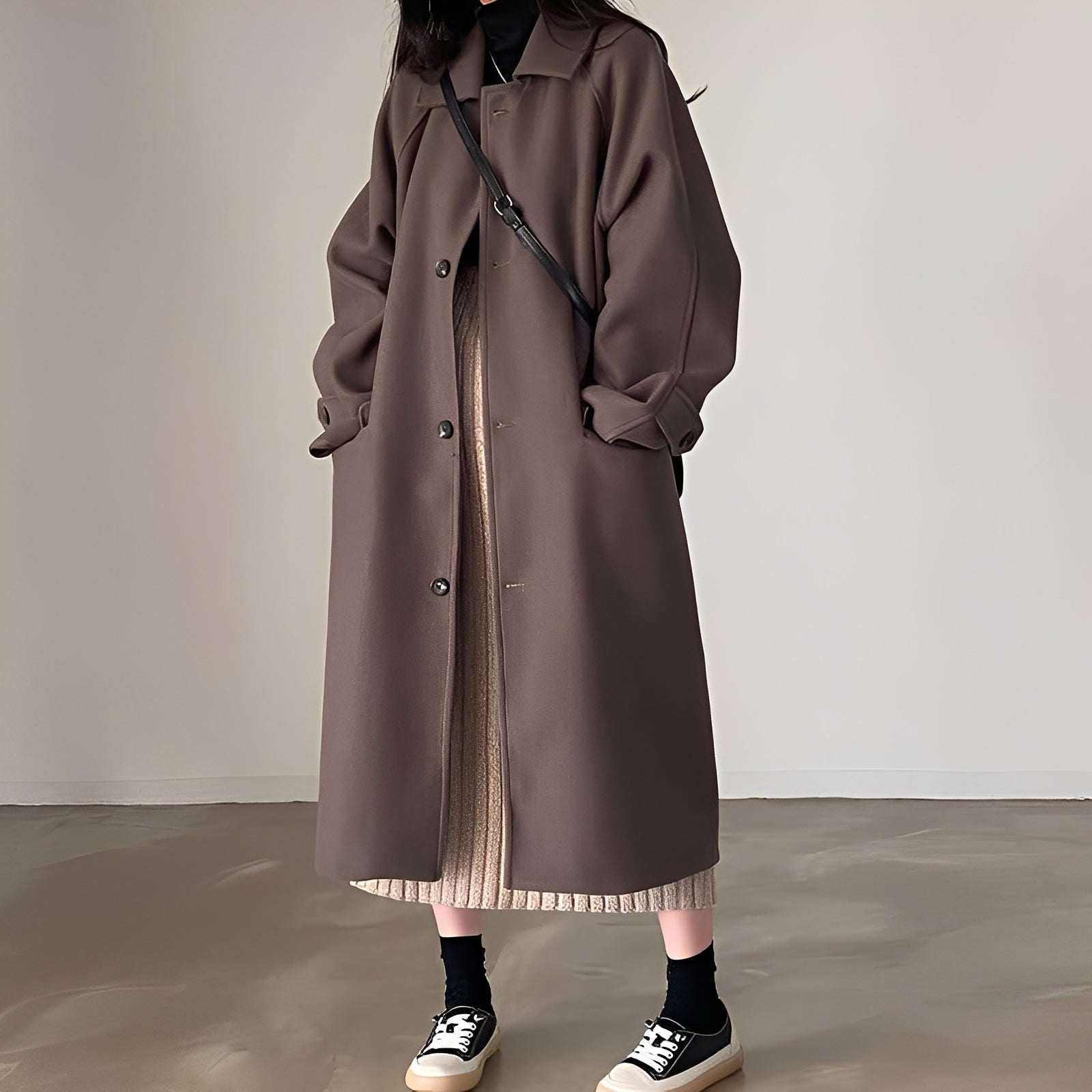 Siksi "Estelle - Retro kaulukset Yksirivinen Rentoutunut Keskipitkä Villakangastakki" kuuluu vaatekaappiisi: