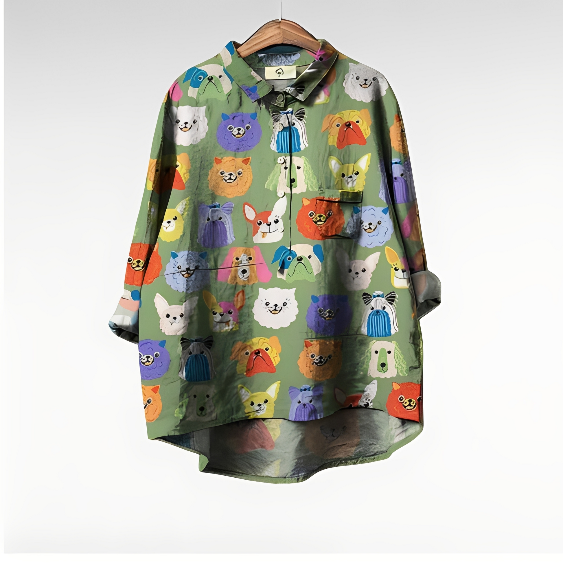 Eydenin naisten pitkähihainen pusero esittelee ainutlaatuisen ja leikkisän koirapainatuksen, joka lisää persoonallisuutta vaatekaappiisi. Valmistettu pehmeästä ja hengittävästä kankaasta, se takaa mukavuuden koko päivän ajan tinkimättä tyylistä. Sen rento ja klassinen leikkaus mahdollistaa helpon yhdistämisen housuihin, hameeseen tai farkkuihin rentoa tai tyylikästä rentoa ilmettä varten. Kevyt ja monipuolinen, tämä pusero on täydellinen työhön, viikonloppuun tai erityisiin tilaisuuksiin. Taiteellisen muotoilunsa ansiosta Eyden-pusero antaa sinun erottua joukosta samalla kun pysyt vaivattoman tyylikkäänä.