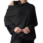 Tämä off-shoulder-villapaita yhdistää naisellisen eleganssin ja mukavan käyttömukavuuden. Pehmeä materiaali tuntuu miellyttävältä ihoa vasten ja tarjoaa lämpimän, viihtyisän tunteen jopa kylminä päivinä. Ilmavan leikkauksen ja hienostuneen olkasuunnittelun ansiosta se sopii täydellisesti farkkuihin, hameisiin tai leggingseihin. Monipuolinen suosikkivaate tyylikkäisiin talvityyleihin.