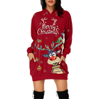 Tämä naisten joulumekko yhdistää pehmeän, mukavan materiaalin söpöön porokuvioon. Huppu lisää mukavuutta ja antaa mekolle rennon, modernin ilmeen. Ihanteellinen joulun juhliin, kotivaatteeksi tai rentoihin talvipäiviin. Helppohoitoinen, tyylikäs mekko, joka yhdistää juhlavan tunnelman ja mukavuuden vaivattomasti.