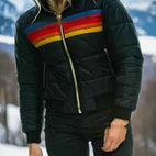 Hesterr tuo väriä harmaisiin talvipäiviin. Tämä pehmustettu takki vakuuttaa eloisalla sateenkaari-kuvioinnillaan ja yhdistää näyttävän muotoilun hyödylliseen toiminnallisuuteen. Pehmeä, vuorattu materiaali tarjoaa miellyttävää lämpöä, kun taas huppu suojaa lisäsuojana tuulelta. Täydellinen kaikille, jotka haluavat näyttää tyylikkäiltä myös talvella.