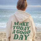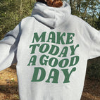 Tässä on Hyvä päivä! - puuvillahuppari viestillä - se tuo positiivisuutta ja mukavuutta arkipukeutumiseesi. Laadukkaasta puuvillasta valmistettu huppari ei ole vain miellyttävä ja pehmeä, vaan se tekee myös selkeän lausunnon, joka antaa päivällesi positiivisen alun.