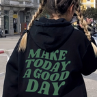 "Hyvä päivä!"-huppari on täydellinen rentoihin retkiin tai mukaviin päiviin ja on paras valinta, kun haluat levittää hyvää mieltä ja nauttia mukavuudesta vaivattomasti. Lähde itsevarmasti ja hymyillen ulos ja tee jokaisesta päivästä hyvä päivä tämän tyylikkään ja motivoivan asun kanssa.