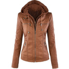 Janene - Rento, sääkestävä nahkatakki hupulla naisille