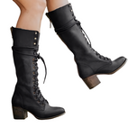 Jasmine - Rento nauhalliset saappaat paksulla korolla naisille