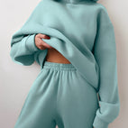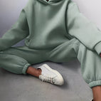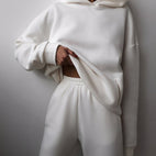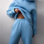 Jasmine-setti koostuu väljästi istuvasta hupparista ja yhteensopivista verryttelyhousuista, jotka yhdistävät mukavuuden ja liikkumisvapauden. Pehmeät materiaalit takaavat miellyttävän käyttökokemuksen, kun taas moderni muotoilu tekee siitä monipuolisen vapaa-ajan asun. Ihanteellinen kotiin, kävelyille tai rentoihin päiviin liikkeellä.