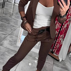 Tämä tyylikäs bleiserisetti yhdistää klassisen muotoilun moderniin keveyteen. Korkealaatuinen kangas takaa miellyttävän käyttökokemuksen, kun taas tarkka käsittely luo elegantin siluetin. Olipa kyseessä toimisto, tapahtumat tai vapaa-aika – tämä setti on ihanteellinen valinta itsevarmaan esiintymiseen.