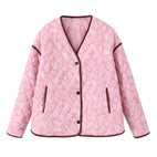 Katelyn-takki erottuu edukseen ainutlaatuisella tilkkutyödesignillaan herkissä vaaleanpunaisissa sävyissä ja antaa jokaiselle asulle luovan boho-ilmeen. Tikkauksen ansiosta se tarjoaa paitsi lämpöä myös modernin, trendikkään tyylin. Väljä leikkaus takaa korkean käyttömukavuuden ja tekee takista monipuolisen kumppanin – täydellinen vapaa-aikaan, kaupunkikävelyille tai rentoihin tapaamisiin.