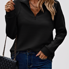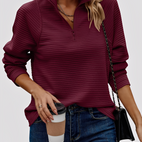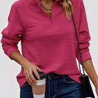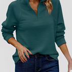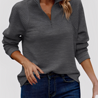 Katheryn-pusero erottuu rennolla leikkauksellaan ja puolikkaalla vetoketjulla V-kaula-aukossa, joka mahdollistaa kauluksen joustavan säätämisen. Pehmeä materiaali takaa miellyttävän käyttömukavuuden ja tekee puserosta ihanteellisen arkeen, toimistoon tai vapaa-aikaan. Sen väljä istuvuus antaa jokaiselle asulle rennon, modernin ilmeen, samalla kun laadukas viimeistely säilyttää muodon ja mukavuuden. Monipuolinen vaatekappale, joka yhdistää tyylin ja mukavuuden vaivattomasti.