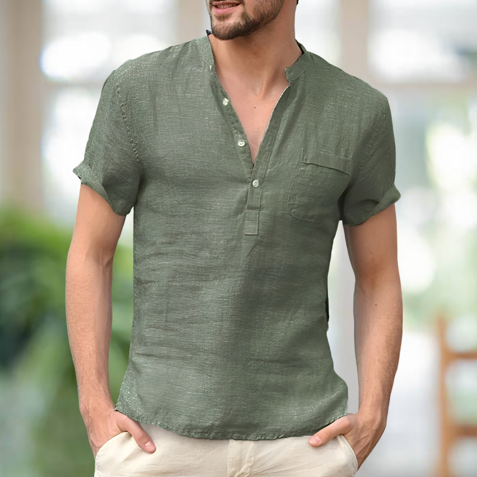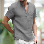 Lyhythihainen paita puhtaasta pellavasta on ihanteellinen kuumille päiville. Kevyt, hyvin hengittävä materiaali tarjoaa mukavan käyttökokemuksen, kun taas väljä leikkaus antaa liikkumisvapauden. Olitpa lomalla, rannalla tai kaupungissa, tämä paita antaa sinulle rennon, tyylikkään ilmeen.