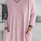 Pitkähihainen paita 'Krystle' erottuu rennolla leikkauksellaan ja pehmeällä, miellyttävällä materiaalillaan. Käytännöllisten taskujensa ansiosta se yhdistää toiminnallisuuden ja tyylin, ja sopii täydellisesti arkeen, vapaa-aikaan tai rentoihin hetkiin kotona. Sen yksinkertainen, moderni muotoilu tekee siitä monipuolisen ja välttämättömän perusvaatteen.