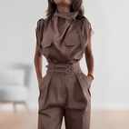 Tyylikäs hihaton haalari korkeavyötäröisellä vyöllä