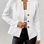 Lorraine-puvuntakki yhdistää rennon tyylin ja kevyen toiminnallisuuden. Valmistettu miellyttävän kevyestä materiaalista, se sopii täydellisesti kevääseen ja kesään. Yksirivinen leikkaus luo modernin, hoikan ilmeen, joka on monipuolisesti yhdisteltävissä – olipa kyseessä toimisto, kaupunkikävely tai rento illanvietto. Sen hienovaraiset yksityiskohdat antavat takille elegantin mutta mutkattoman viehätyksen.