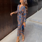 - Elegantti V-kaula-aukko ja korostettu vyötärö: V-kaula-aukko yhdistettynä hienovaraiseen solmuun vyötäröllä kiinnittää huomion dekolteeseesi ja vyötäröösi, korostaen siluettiasi hienostuneella tavalla.
