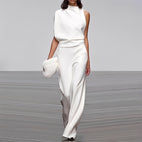Camille – Tyylikäs Yhdistelmäpuku Laskostetuilla Housuilla ja pitsillä