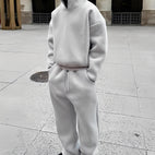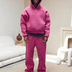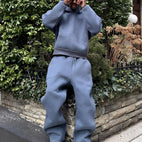 Tämä ylisuurikokoinen hupparisetti yhdistää rennon leikkauksen ja tyylikkään muotoilun miehille. Pehmeä, hengittävä materiaali takaa miellyttävän käyttömukavuuden, kun taas moderni istuvuus takaa trendikkään ilmeen. Ihanteellinen vapaa-aikaan, urheiluun tai rentoihin päiviin kotona, setti on monipuolisesti yhdisteltävissä ja pysyy aina mukavana.