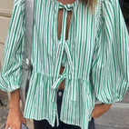 Naisten pusero – Raidat – Puhvihihat – Väljä leikkaus