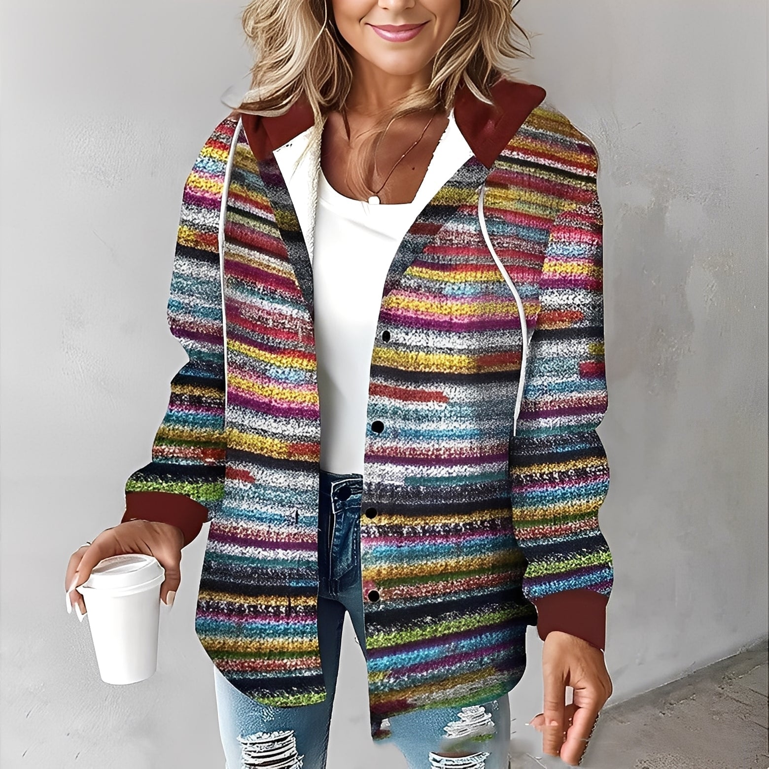 Hannah – Lämmin hupparitakki kuviolla