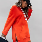Tämä ylikokoinen huppari yhdistää rennon tyylin ja korkean käyttömukavuuden. Pehmeä, lämmittävä materiaali tarjoaa miellyttävän tunteen, kun taas rento leikkaus mahdollistaa maksimaalisen liikkumisvapauden. Huppu antaa designille urheilullisen ja modernin ilmeen, mikä tekee hupparista ihanteellisen arkeen, vapaa-aikaan tai rentoihin hetkiin kotona. Olipa kyseessä farkut, leggingsit tai verkkarit – tämä monipuolinen vaate sopii aina.