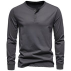 Klassinen Henley-nappilista moderniin, rentoon ilmeeseen