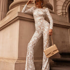 Säteilevää eleganssia! Naisten Haalari - Pitsi Paljeteilla - Pitkät Hihat - Pyöreä Kaulus - Istuva Malli on täydellinen iltaan.