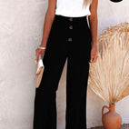Korkea vyötärö ja leveät lahkeet tyylikkääseen ja moderniin tyyliin.✔ Monipuolisuus: