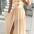 Tahlia-mekko hurmaa olkaimettomalla muotoilullaan ja hienoilla rypytys-yksityiskohdillaan. Kevyestä, laskeutuvasta kankaasta valmistettu mekko luo elegantin siluetin ja tarjoaa korkean käyttömukavuuden. Ihanteellinen juhliin, iltatilaisuuksiin tai kesätapahtumiin.