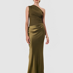 Mekko Tara – Tyylikäs asyymmetrinen kaulamekko ja suora hame edustaa modernia hienostuneisuutta. Yhden olkapään kaula-aukko luo tyylikkään ja ajankohtaisen ilmeen, kun taas suora, virtaava hame laskeutuu täydellisesti hienostuneen siluetin saavuttamiseksi. Sileä ja pehmeä kangas lisää ylellisyyden tuntua, mikä tekee siitä ihanteellisen erityisiin tilaisuuksiin ja iltatapahtumiin.