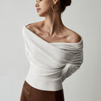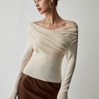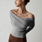 Naisellinen käyttömukavuus – olkaimeton neulepaita tyylikkäisiin tilaisuuksiin.